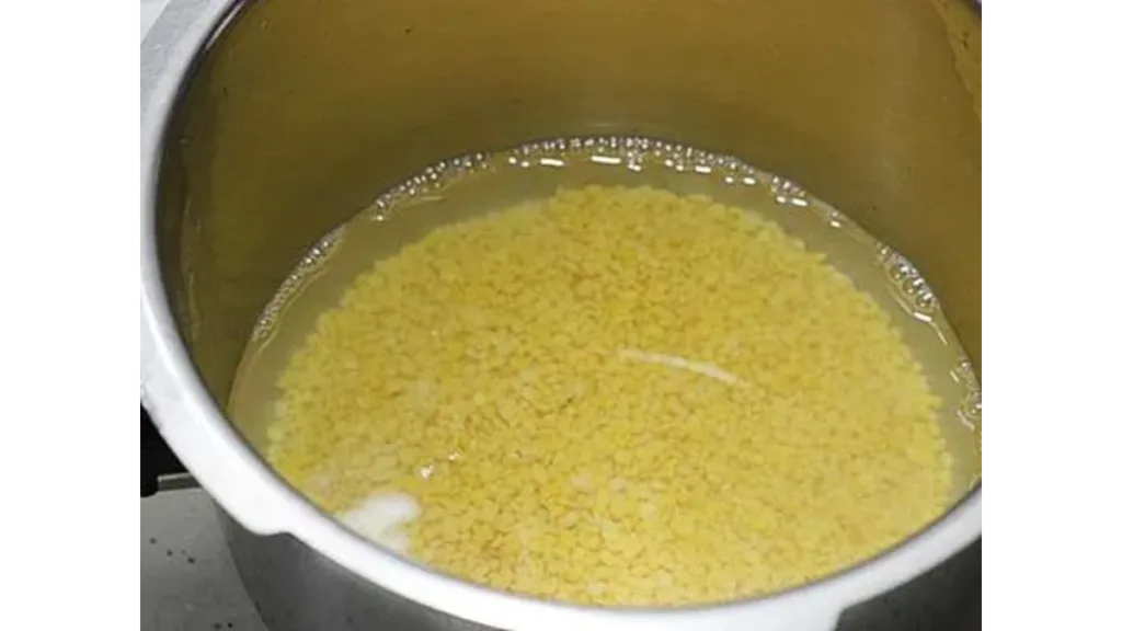 Let it whistle 2-3 times, turn off the gas flame and let the cooker cool down, add some ghee on top, serve and enjoy.